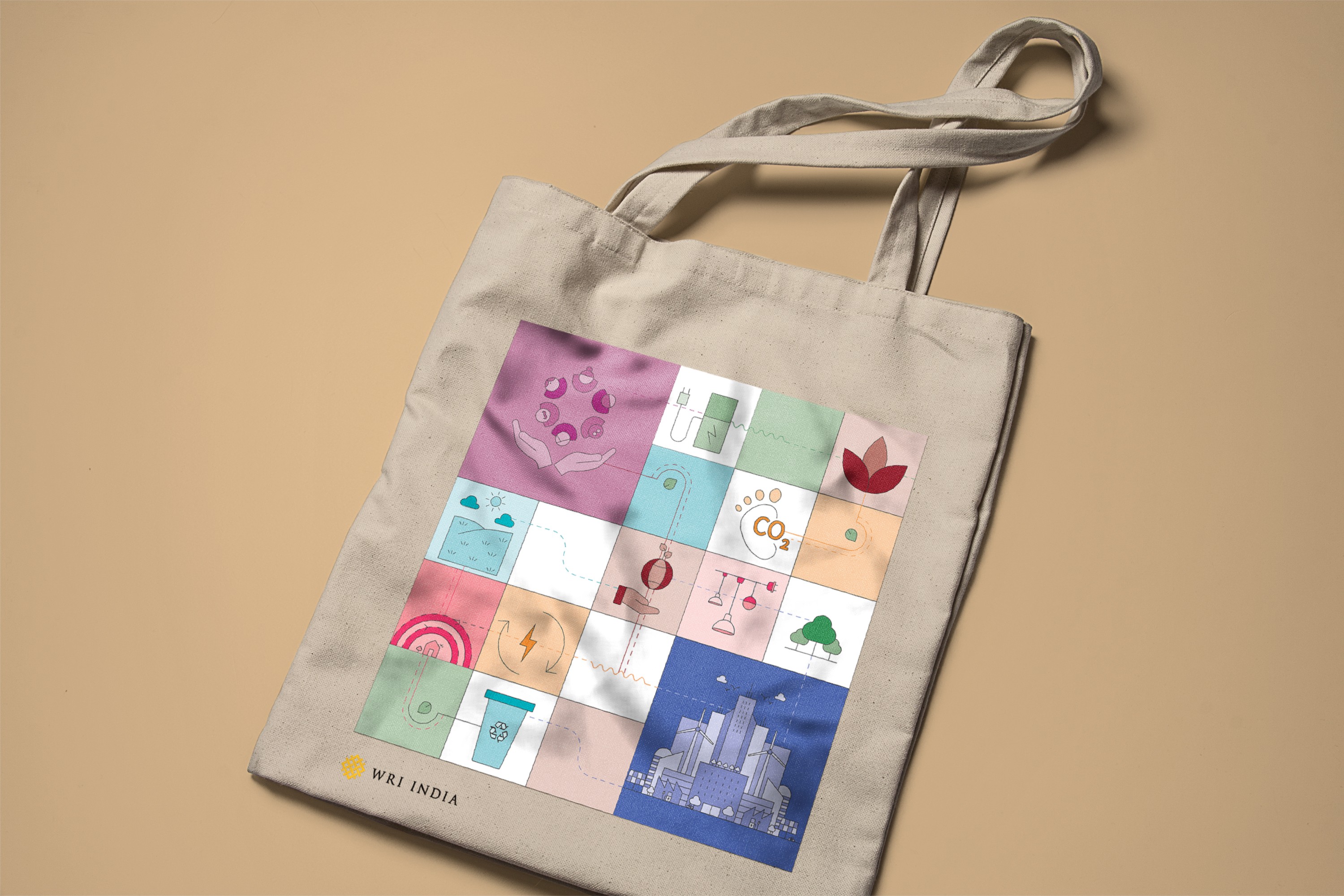 This project brought together two major pieces of work for WRI India: designing their conference proceedings and building a thematic visual system that could stretch across various branding materials.
