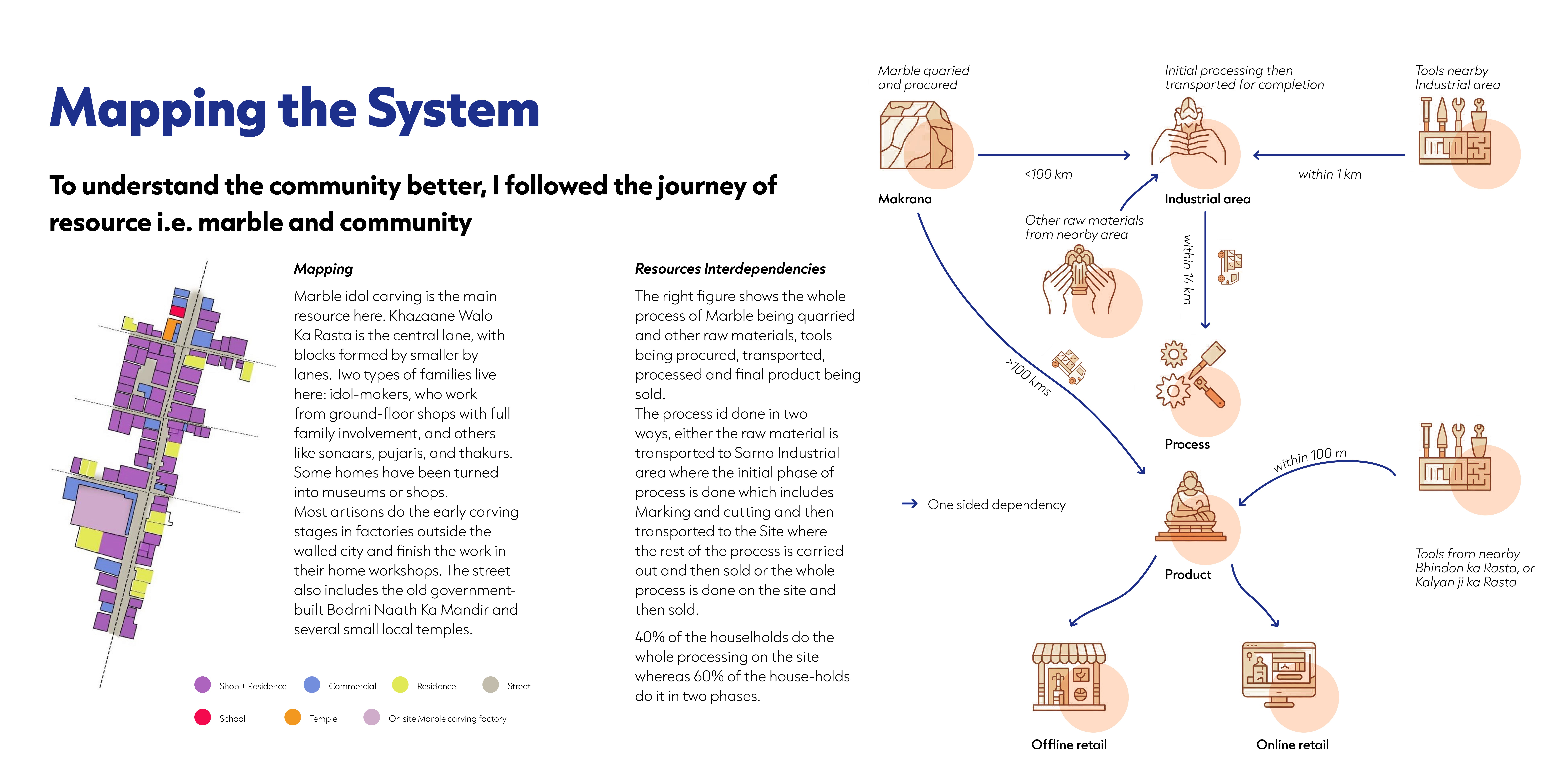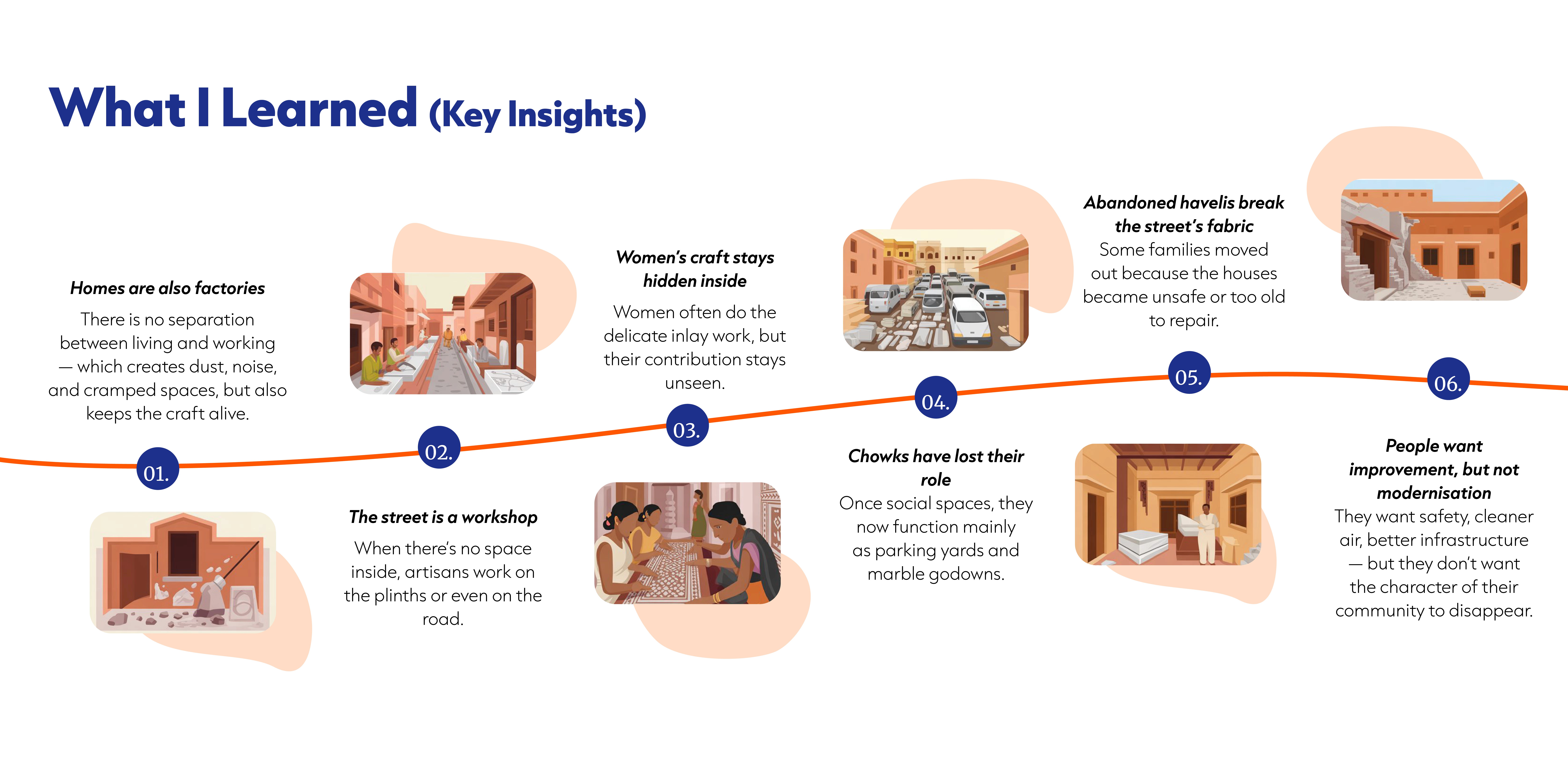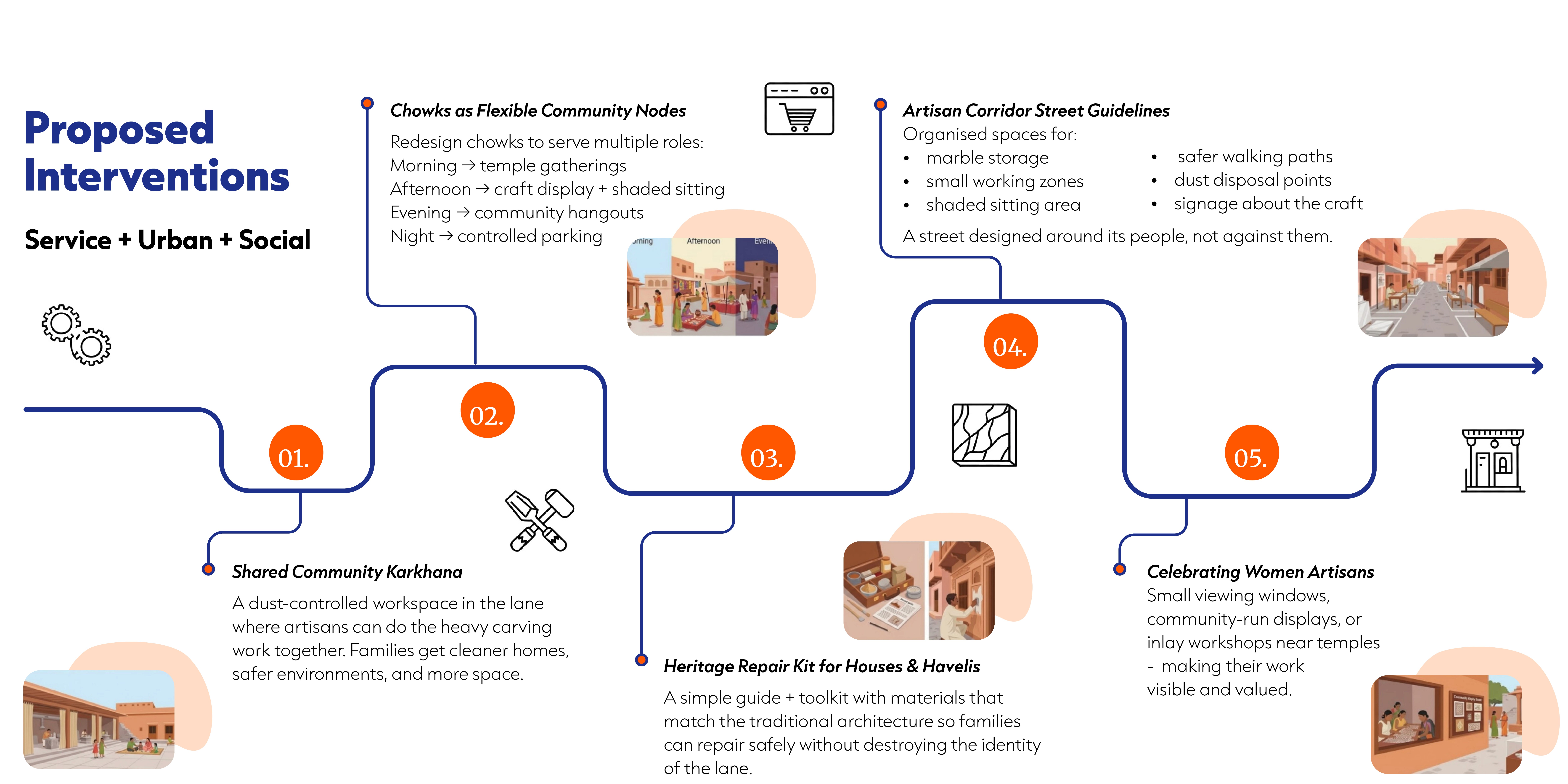 Khazaane Waalo Ka Rasta is a narrow, bustling lane in Jaipur’s walled city. For generations, families here have carved marble idols in their homes - entire households turning raw stone into gods, souvenirs, and heritage pieces that travel across the world. Over time, the craft, the homes, and the street have become inseparable. My role in this project was to understand how people live, work, and share space here - and imagine ways the neighbourhood could grow without losing its soul.