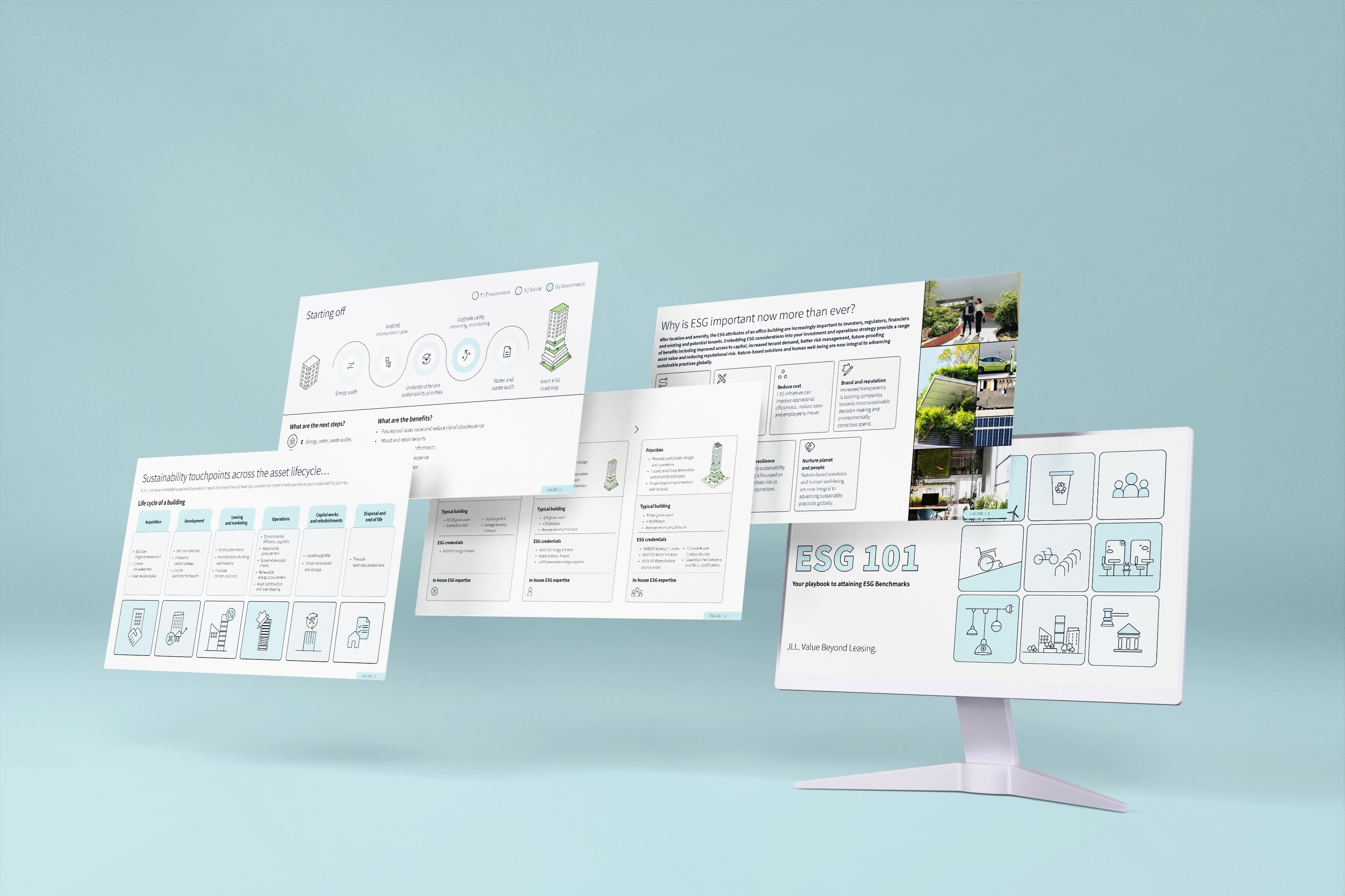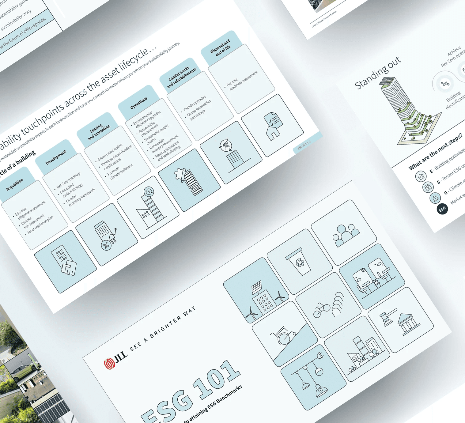 A JLL-branded sustainability capability deck developed for a competitive pitch in Australia.